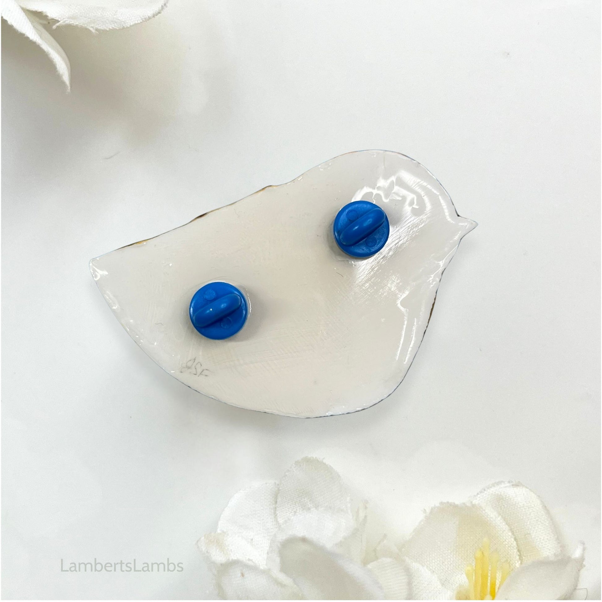 ✿How I make the birds is quite simple in steps. The base design is drawn onto shrink plastic, which is then cut. The cut plastic is then coloured and shrunk in an oven. After shrinking the bird is them coloured again . Colouring may include using coloured pencils, markers and paint. Then the colours are fixed. If I am adding any embellishment I will do it around now. After that I seal the brooch with UV resin and add the pins.