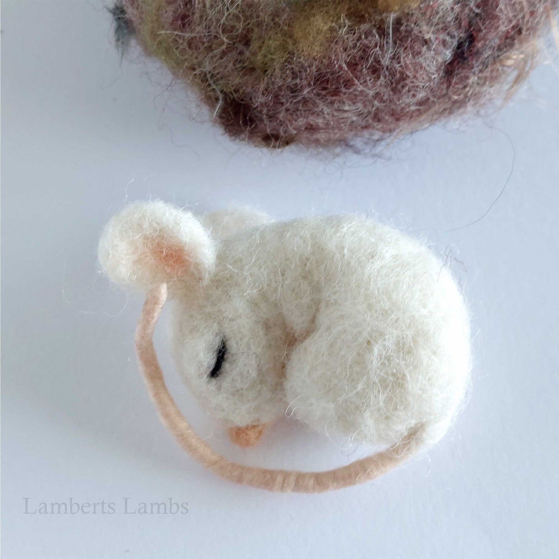 Needle felted baby mouse in a nest
