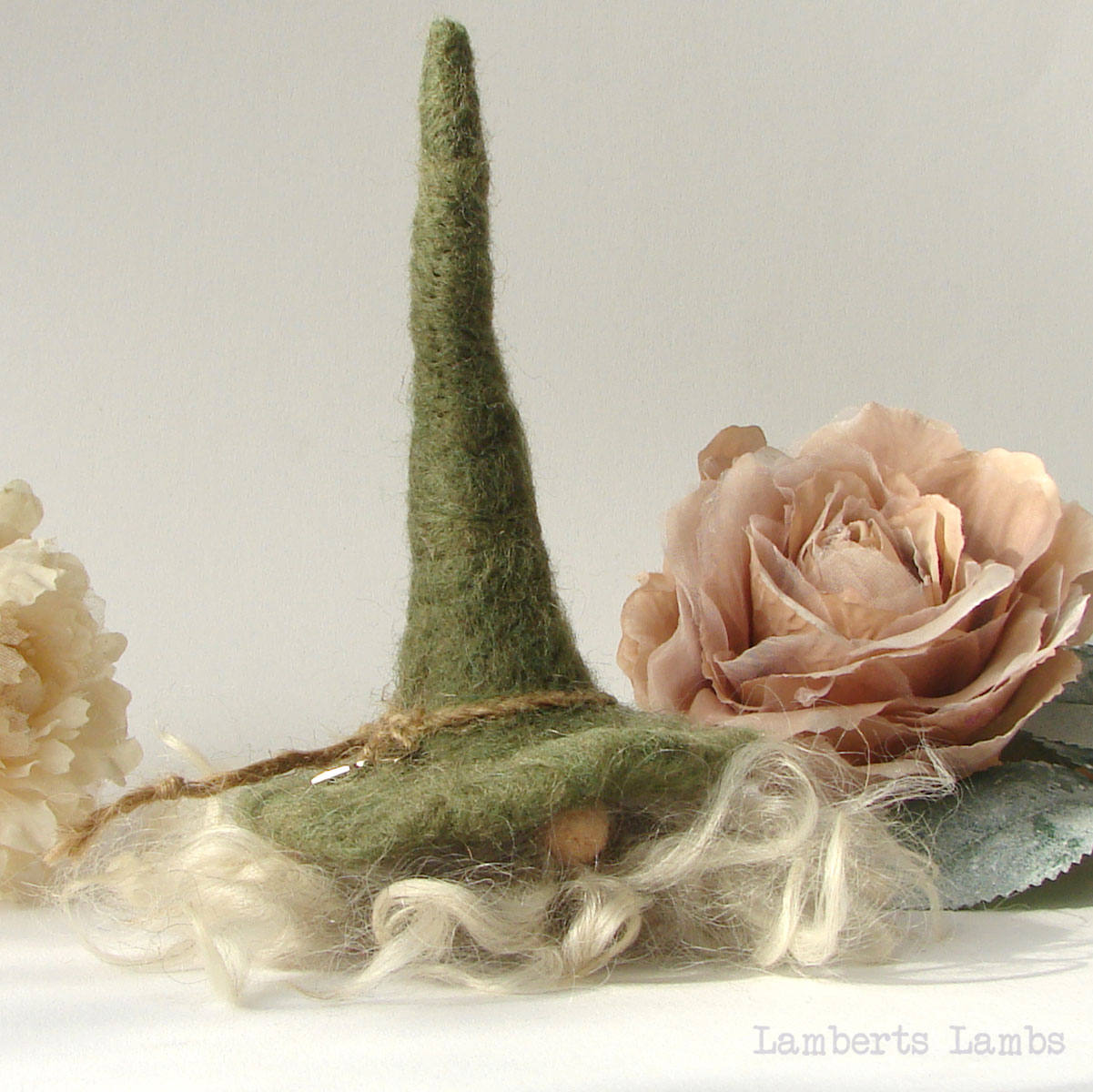 Needle Felted Gnome Wool Tomte Felted Tomte Nisse a Green Hat Hairy Gnome Nordic gnome