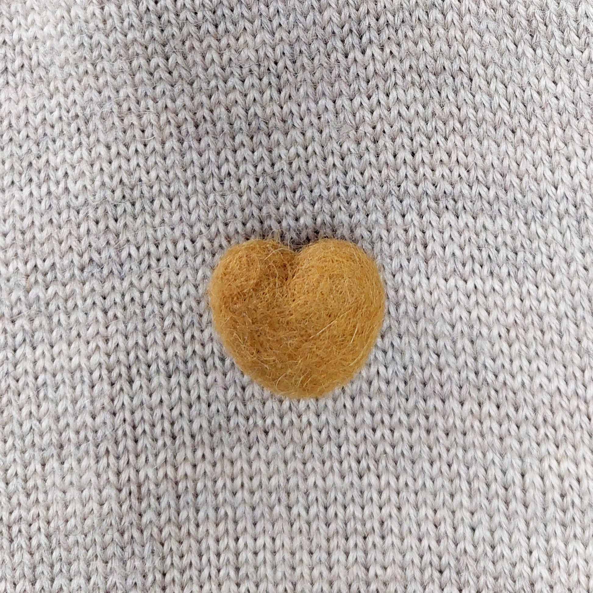 Small Needle felted Heart Brooch, Handmade Felted Heart Brooch - Yellow Ochre Shade